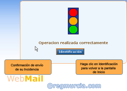 Cuando haya introducido los datos, pulse el botón Enviar. Su incidencia se tramitará tan pronto como nos sea posible. Finalmente, aparecerá una pantalla de verificación de su operación. Haga clic en el botón de Identificación para volver a la pantalla de Inicio.